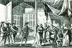 Woodes Rogers' men search Spanish ladies for their jewels in Guayaquil, 1709