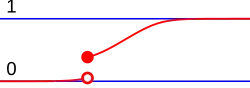 A special case is the discrete distribution of a random variable that can take on only one fixed value, in other words, a Dirac measure. Expressed formally, the random variable has a one-point distribution if it has a possible outcome such that [19] All other possible outcomes then have probability 0. Its cumulative distribution function jumps immediately from 0 before to 1 at . It is closely related to a deterministic distribution, which cannot take on any other value, while a one-point distribution can take other values, though only with probability 0. For most practical purposes the two notions are equivalent.
