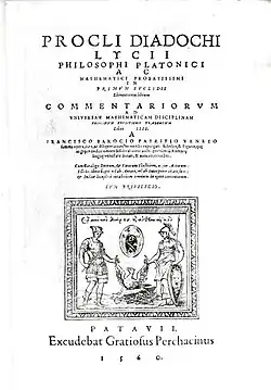 ![]() The beginning of the first Latin edition of Proclus' Commentary on Euclid's Elements | |