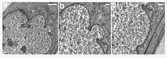 - ^ Haithcock E, Dayani Y, Neufeld E, Zahand AJ, Feinstein N, Mattout A, et al. (November 2005). "Age-related changes of nuclear architecture in Caenorhabditis elegans". Proceedings of the National Academy of Sciences of the United States of America. 102 (46): 16690–16695. Bibcode:2005PNAS..10216690H. doi:10.1073/pnas.0506955102. PMC 1283819. PMID 16269543.