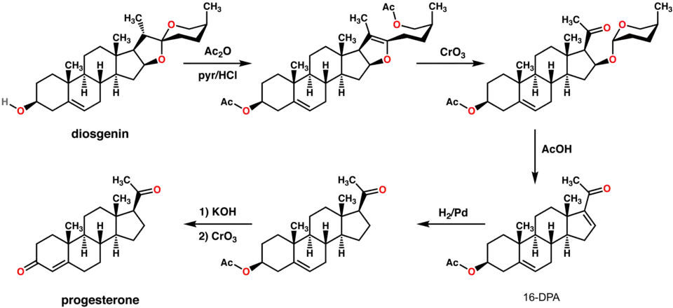 - ^ a b Marker RE, Krueger J (1940). "Sterols. CXII. Sapogenins. XLI. The Preparation of Trillin and its Conversion to Progesterone". J. Am. Chem. Soc. 62 (12): 3349–3350. Bibcode:1940JAChS..62.3349M. doi:10.1021/ja01869a023.