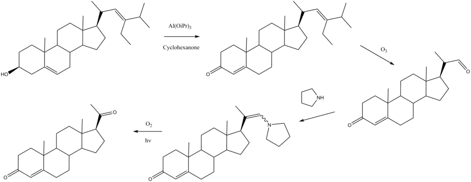 - ^ Sundararaman P, Djerassi C (October 1977). "A convenient synthesis of progesterone from stigmasterol". The Journal of Organic Chemistry. 42 (22): 3633–3634. doi:10.1021/jo00442a044. PMID 915584.