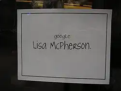 In a different video posted to YouTube, Anonymous addresses news organizations covering the conflict and criticizes media reporting of the incident.[24] In the video, Anonymous criticizes the media specifically for not mentioning objections by the group to certain controversial aspects of the history of the Church of Scientology, and cited past incidents including the death of Lisa McPherson: "We find it interesting that you did not mention the other objections in your news reporting. The stifling and punishment of dissent within the totalitarian organization of Scientology. The numerous, alleged human rights violations. Such as the treatment and events that led to the deaths of victims of the cult such as Lisa McPherson."[24] Lisa McPherson was a Scientologist who died in 1995 under controversial circumstances. The Church of Scientology was held responsible and initially faced felony charges in her death. The charges were later dropped and a civil suit brought by McPherson's family was settled in 2004.[24] This second video was removed on January 25, 2008, YouTube citing a "terms of use violation".[8] Organizers of the February 10, 2008, Project Chanology protests against the Church of Scientology told the St. Petersburg Times the event was timed to coincide with the birthday of Lisa McPherson.[37]