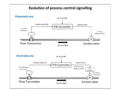Showing the evolution of analog control loop signaling from the pneumatic to the electronic eras