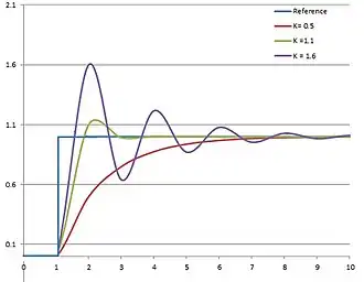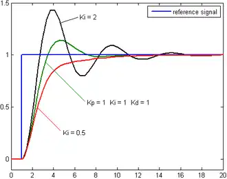 Applying too much integral when the error is small and decreasing will lead to overshoot. After overshooting, if the controller were to apply a large correction in the opposite direction and repeatedly overshoot the desired position, the output would oscillate around the setpoint in either a constant, growing, or decaying sinusoid. If the amplitude of the oscillations increases with time, the system is unstable. If it decreases, the system is stable. If the oscillations remain at a constant magnitude, the system is marginally stable.
