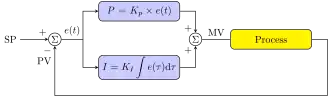 is the error (SP is the setpoint, and PV(t) is the process variable),