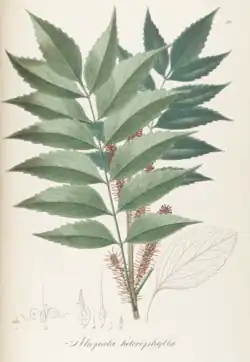 - ^ Mast, Austin R.; Willis, Crystal L.; Jones, Eric H.; Downs, Katherine M.; Weston, Peter H. (July 2008). "A smaller Macadamia from a more vagile tribe: inference of phylogenetic relationships, divergence times, and diaspore evolution in Macadamia and relatives (tribe Macadamieae; Proteaceae)". American Journal of Botany. 95 (7): 843–870. Bibcode:2008AmJB...95..843M. doi:10.3732/ajb.0700006. ISSN 1537-2197. PMID 21632410.