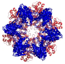 - ^ Bochtler M, Ditzel L, Groll M, Hartmann C, Huber R (1999). "The proteasome". Annual Review of Biophysics and Biomolecular Structure. 28 (1): 295–317. doi:10.1146/annurev.biophys.28.1.295. PMID 10410804.