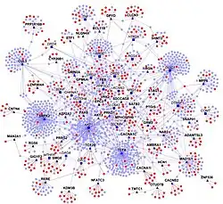 - ^ Schwikowski B, Uetz P, Fields S (December 2000). "A network of protein-protein interactions in yeast". Nature Biotechnology. 18 (12): 1257–1261. doi:10.1038/82360. PMID 11101803. S2CID 3009359.