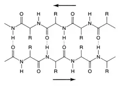 - ^ Deechongkit S, Nguyen H, Powers ET, Dawson PE, Gruebele M, Kelly JW (July 2004). "Context-dependent contributions of backbone hydrogen bonding to beta-sheet folding energetics". Nature. 430 (6995): 101–5. Bibcode:2004Natur.430..101D. doi:10.1038/nature02611. PMID 15229605. S2CID 4315026.