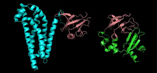 9. ^ Haynie DT, Xue B (May 2015). "Superdomains in the protein structure hierarchy: The case of PTP-C2". Protein Science. 24 (5): 874–882. doi:10.1002/pro.2664. PMC 4420535. PMID 25694109.