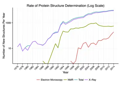 Rate of protein structure determination by method and year