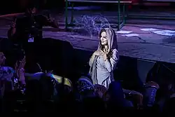 After the death of Mahsa Amini on September 16, 2022, who was arrested for alleged wearing her Hijab improperly and later died after she had been —according to eyewitnesses— severely beaten by religious morality police officers, a massive global protests sparked all around the world and many Iranian artists released protest songs. Among all of the songs, Shervin Hajipour's "For" —which was released twelve days after Amini's death— became an instant hit and immediately turned into the unofficial "anthem" of the uprising. It was widely used during gatherings, from schools and universities to streets, both nationwide and across the globe. It was broadly circulated in social media and foreign TV channels and radio stations as well. The song also served as the backdrop for several other forms of art such as video works, graphic design and performance art. On November 11, 2022, Roxana Saberi reported the song as "the most viral tune to ever come out of Iran".[44] Since its release, "For" has become the single most covered protest song in Iran's history.[45] Hajipour was later arrested for the song and released on bail five days later, banned from any musical activity.[46]