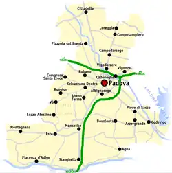 ![]() Map highlighting the location of the province of Padua in Italy | |