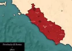 The province of Rome (Italian: provincia di Roma) was one of the five provinces that formed part of the Lazio region of Italy. It was established in 1870 and disestablished in 2014. It was essentially coterminous with the Rome metropolitan area. The city of Rome was the provincial capital. During the 1920s, the boundary of the province shrank as land was ceded to establish new provinces. The province of Rome was the most populous province in Italy. On 1 January 2015, it was superseded by a new local government body—the Metropolitan City of Rome Capital.[1]