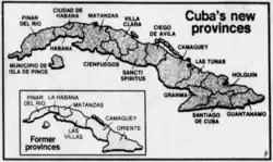 ![]() Provinces (1–15) and special municipality (16) of Cuba | |