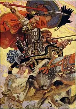 The epic poem, An Táin Bó Cúailnge (the Cattle Raid of Cooley) describes a war between Connacht and Ulster, and is perhaps best known for Cú Chulainn's single handed defence of Ulster against the champions of Connacht in turn, while his comrades were disabled by a spell.