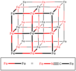 - ^ A neutron diffraction study of Prussian blue, Fe4[Fe4(CN)6]3. 14D2O. 1974. Zeitschrift fur Physikalische Chemie. 92/354-357. doi:10.1524/zpch.1974.92.4-6.354.