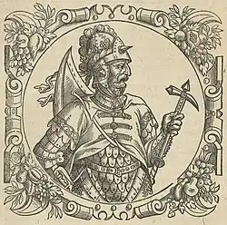 The first reinforcement to the Teutonic forces arrived in early 1261, but was wiped out on 21 January 1261 by Herkus Monte in the Battle of Pokarwis.[5] In January 1262 reinforcements arrived from the Rhineland, led by Wilhelm VII, Duke of Jülich, who was obliged by Pope Alexander IV to fulfil his crusader duties in Prussia.[26] This army broke the siege of Königsberg but as soon as the army returned home, the Sambians resumed the siege and were reinforced by Herkus Monte and his Natangians. Herkus was later injured and the Natangians retreated, leaving the Sambians unable to stop supplies reaching the castle and the siege eventually failed.[27] Prussians were more successful capturing castles deeper into the Prussian territory (with an exception of Wehlau, now Znamensk), and the Knights were left only with strongholds in Balga, Elbing, Culm, Thorn, and Königsberg.[11] Most castles fell in 1262–1263, and Bartenstein fell in 1264. The Prussians destroyed captured forts instead of using them for their own defence, so the end of successful sieges meant that large Prussian forces did not have to stay near their home and were then free to operate in other parts of Prussia,[28] raiding the Culmerland and Kuyavia.
