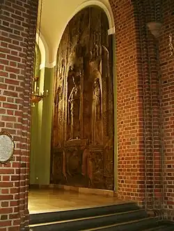 After the death of Duke Mestwin II in 1294, and according to the Treaty of Kępno[12] signed in 1282, Przemysł II inherited Pomerelia. This strengthened his position and enabled his coronation as King of Poland.[13] The ceremony was held on 26 June 1295 in Gniezno, and was performed by his ally Archbishop Jakub Świnka.[14] Only nine months later, on 8 February 1296, Przemysł II was murdered during a failed kidnapping attempt made by men of the Margraves of Brandenburg, with some help from the Polish noble families of Nałęcz and Zaremba.[9][15]