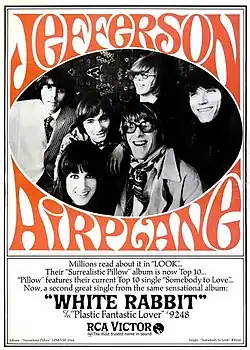 Jefferson Airplane's Surrealistic Pillow (February 1967) was one of the first albums to come out of San Francisco that sold well enough to bring national attention to the city's music scene. The LP tracks "White Rabbit" and "Somebody to Love" subsequently became top 10 hits in the US.[151]