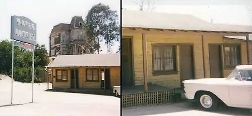 In response, Hitchcock financed the film's creation through his own Shamley Productions, shooting at Universal Studios under the Revue television unit.[23][39] The original Bates Motel and Bates house set buildings, which were constructed on the same stage as Lon Chaney's The Phantom of the Opera (1925), are still standing at the Universal Studios backlot in Universal City near Hollywood and are a regular attraction on the studio's tour.[40][41]