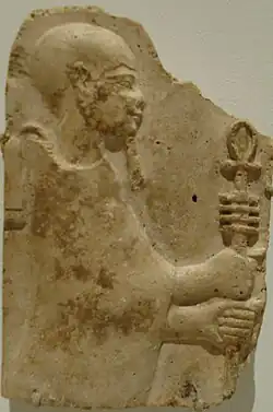 Ptah (/tɑː/ TAH;[2] Ancient Egyptian: ptḥ, reconstructed [piˈtaħ]; Ancient Greek: Φθά, romanized: Phthá; Coptic: ⲡⲧⲁϩ, romanized: Ptah; Phoenician: 𐤐𐤕𐤇, romanized: ptḥ)[3][4][note 1] is an ancient Egyptian deity, a creator god,[5] and a patron deity of craftsmen and architects. In the triad of Memphis, he is the husband of Sekhmet and the father of Nefertem. He was also regarded as the father of the sage Imhotep.