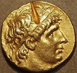 Ptolemy II had numerous half-siblings.[6] Two of his father's sons by his previous marriage to Eurydice, Ptolemy Keraunos and Meleager, became kings of Macedonia.[7] The children by his mother Berenice's first marriage to Philip included Magas of Cyrene and Antigone, the wife of Pyrrhus of Epirus.[3]