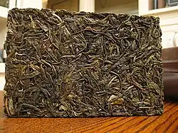 Pu'er or pu-erh[1] is a variety of fermented tea traditionally produced in Yunnan Province, China. Pu-erh tea is made from the leaves of the Yunnan tea plant Camellia sinensis var. assamica,which is a specific variety of tea plant that is native to Yunnan Province. It differs from Yunnan tea (Dianhong) in that pu'er tea goes through a complex fermentation process. In the context of traditional Chinese tea production terminology, fermentation refers to microbial fermentation (called 'wet piling'), and is typically applied after the tea leaves have been sufficiently dried and rolled.[2] As the tea undergoes controlled microbial fermentation, it also continues to oxidize, which is also controlled, until the desired flavors are reached. This process produces tea known as hēichá (黑茶), literally "black tea", though the term is commonly translated to English as "dark tea" to distinguish it from the English-language "black tea" (紅茶 hóngchá, lit. "red tea" in Chinese), which it is not.