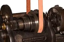 In the case of a drum-style pulley, without a groove or flanges, the pulley often is slightly convex to keep the flat belt centered. It is referred to as a crowned pulley. Once widely used on factory line shafts, this type of pulley is still found driving the rotating brush in upright vacuum cleaners, belt sanders and bandsaws.[14] Agricultural tractors built up to the early 1950s generally had a belt pulley for a flat belt (which is what Belt Pulley magazine was named after). It has been replaced by other mechanisms with more flexibility in methods of use, such as power take-off and hydraulics.