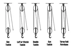 By adding a pulley to the fixed block of a gun tackle the direction of the pulling force is reversed though the mechanical advantage remains the same, Diagram 3a. This is an example of the Luff tackle.