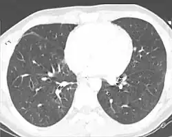 - ^ Donnelly LF (2002). "CT of Acute pulmonary infection/trauma". In Strife JL, Lucaya J (eds.). Pediatric Chest Imaging: Chest Imaging in Infants and Children. Berlin: Springer. p. 123. ISBN 3-540-43557-3.