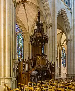External gothic pulpit in Saint-Lô, France -