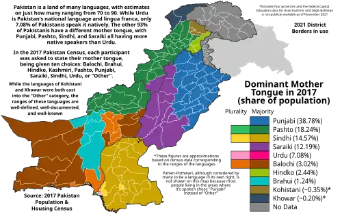 Minor: Balochs, Biharis, Dogras, Haryanvis, Himachalis, Hindkowans, Kashmiris, Muhajirs, Pashtuns, Saraikis, Sindhis[1]