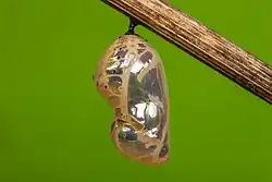 A chrysalis (Latin: chrysallis, from Ancient Greek: χρυσαλλίς, chrysallís, plural: chrysalides, also known as an aurelia) or nympha is the pupal stage of butterflies. The term is derived from the metallic–gold coloration found in the pupae of many butterflies, referred to by the Ancient Greek term χρυσός (chrysós) for gold.