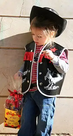 Other customs include wearing masks and costumes, public celebrations and parades (Adloyada), eating hamantashen (transl. "Haman's pockets"), and drinking wine.[11]