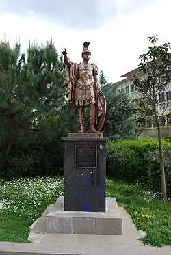 Pyrrhus (/ˈpɪrəs/ PIRR-əss; Ancient Greek: Πύρρος Pýrrhos; 319/318–272 BC) was a Greek king and statesman of the Hellenistic period.[2][3][4][5][6] He was king of the Molossians,[5][7] of the royal Aeacid house,[8] and later he became king (Malalas also called him toparch)[9] of Epirus. He was one of the strongest opponents of early Rome, and had been regarded as one of the greatest generals of antiquity.[10] Several of his victorious battles caused him unacceptably heavy losses, from which the phrase "Pyrrhic victory" was coined.