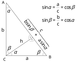 These ratios can be written as Summing these two equalities results in which, after simplification, demonstrates the Pythagorean theorem: