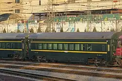 Specially built plateau coaches at Beijing West railway station, arriving from Lhasa as Z22
