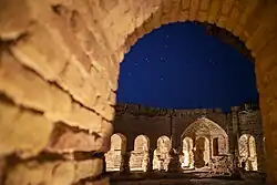 The Sasanian epoch offers many archeological findings and remnants, besides the fact that various sources mention Qom. The most interesting building from an archeological point of view is the Qalʿa-ye Doḵtar in Qom itself, which was long thought to have served religious purposes, while more recent research points to an administrative use.[18] The wider surroundings of Qom also contain numerous traces from palaces, religious, military and administrative buildings.[19] Some of these are mentioned by Qomi, who also names many more fire temples in the urban area of present Qom and its region, of which no archeological traces are left although the location of one fire temple can probably be equated with today's Masjed-e Emām in the city.[20] According to Qomi, the most important fire temple of the area stood in the nearby village of Dizijan.[21]