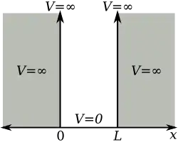 The infinite potential walls of the box determine the values of and at and where must be zero. Thus, at , and . At , in which cannot be zero as this would conflict with the postulate that has norm 1. Therefore, since , must be an integer multiple of ,