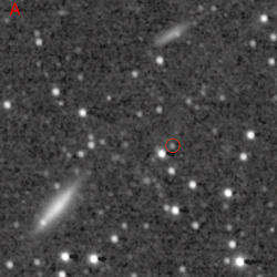 To ascertain Quaoar's orbit, Brown and Trujillo initiated a search for archival precovery images. They obtained several precovery images taken by the Near-Earth Asteroid Tracking survey from various observatories in 1996 and 2000–2002.[24] In particular, they had also found two archival photographic plates taken by astronomer Charles T. Kowal in May 1983,[22] who at the time was searching for the hypothesized Planet X at the Palomar Observatory.[25][26] From these precovery images, Brown and Trujillo were able to calculate Quaoar's orbit and distance. Additional precovery images of Quaoar have been later identified, with the earliest known found by Edward Rhoads on a photographic plate imaged on 25 May 1954 from the Palomar Observatory Sky Survey.[1][3]