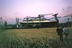 On 30 December 1964, Cunard placed an order for construction of the new ship with John Brown and Company, who would build it at their shipyard in Clydebank, Scotland. The agreed price was £25,427,000 (equal to £650,846,001 today) provision for escalation of labour and materials increases, with an agreed delivery date of May 1968.[38] To assist with its construction the British government provided financial assistance to Cunard in the form of a £17.6 million loan at 4.5% interest.[38]