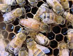 Queen rearing is the process by which beekeepers raise queen bees from young fertilized worker bee larvae. The most commonly used method is known as the Doolittle method.[16] In the Doolittle method, the beekeeper grafts larvae, which are 24 hours or less of age, into a bar of queen cell cups. The queen cell cups are placed inside of a cell-building colony.[17] A cell-building colony is a strong, well-fed, queenless colony that feeds the larva royal jelly and develops the larvae into queen bees.[18]