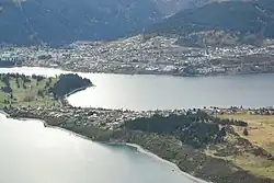 Queenstown (Māori: Tāhuna)[3] is a resort town in Otago in the south-west of New Zealand's South Island. It is the seat and largest town in the Queenstown-Lakes District.