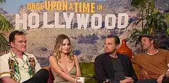 In July 2017, it was reported that Tarantino's next project would be a film about the Manson Family murders.[94] In February 2018, it was announced that the film's title would be Once Upon a Time in Hollywood, and that Leonardo DiCaprio would play Rick Dalton, a fictional star of television Westerns, with Brad Pitt as Dalton's longtime stunt double Cliff Booth; Margot Robbie would be playing real life actress Sharon Tate, portrayed as Dalton's next-door neighbor.[95] Filming took place in the summer of 2018.[96] In wake of the Harvey Weinstein sexual abuse allegations, Tarantino severed ties to The Weinstein Company and Miramax and sought a new distributor after working with Weinstein for his entire career.[97]