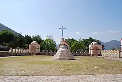 El Cerrito is located in the municipality of Corregidora, only ten minutes from the historic center of the municipal seat. Twenty three million pesos has been budgeted for its restoration. Only part of the site is open to visitors, which focuses on the El Cerrito pyramid, which is illuminated on certain occasions. This pyramid’s dimensions are similar to that of the Pyramid of the Moon in Teotihuacan. This is one of the main tourist attractions of the area. The name comes from the fact that the site was part of the El Cerrito Hacienda, named after the site, which then was only a "hill" covered in vegetation. The site was an important Toltec influenced ceremonial center, later occupied by the Chichimecas. Later, the area was converted into the sanctuary of the "Virgen de El Pueblito" Virgin Mary image for about a century. Besides the pyramid, another significant structure is called "El Fortín (The Small Fort), which was built over a pre Hispanic pyramid base in 1876, with Neo Gothic doors and windows.[76]
