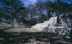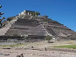 Toluquilla is a smaller site, occupied from 300 CE to 1300CE. This site was a ceremonial, political and administrative center, located on the upper part of an elongated hill, surrounded by ravines. The structures consist of a series of pyramid bases of stone and mud covered in stone plates or tiles. It also contains four Mesoamerican ball courts, one of which is much larger than other similar ones in the area from the same time. There is also a building which shows evidence of stucco work.[74] Later in its history, the area was invaded by the Chichimeca Jonaz, but when the Spanish arrived both sites were abandoned.[15]