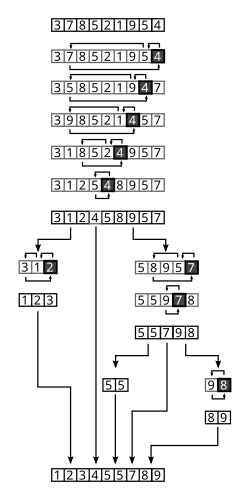 - ^ a b c d Cormen, Thomas H.; Leiserson, Charles E.; Rivest, Ronald L.; Stein, Clifford (2009) [1990]. "Quicksort". Introduction to Algorithms (3rd ed.). MIT Press and McGraw-Hill. pp. 170–190. ISBN 0-262-03384-4.