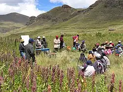 Rotation is used in its Andean native range. Rotation is common with potato, cereals and legumes including Lupinus mutabilis.[44][45] Traditionally, quinoa rotation happens in plots called aynoqas. These are made up of different sized plots in different zones, and each family unit would own plots in different areas. The aynoqas allowed for better crop yield, agricultural and ecological sustainability, and food security within communities.[43]